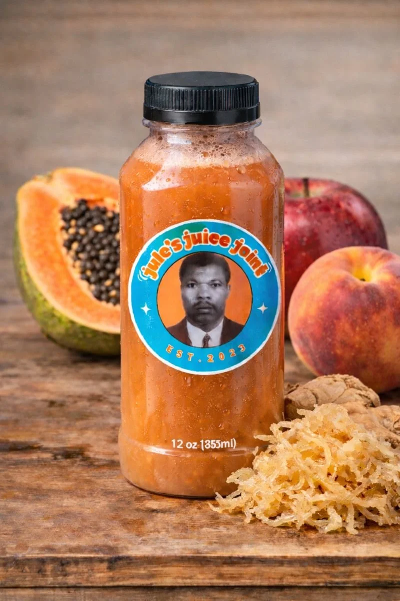 A 12 oz all-natural cold-pressed juice made with papaya, fuji apple, peach, ginger & sea moss.